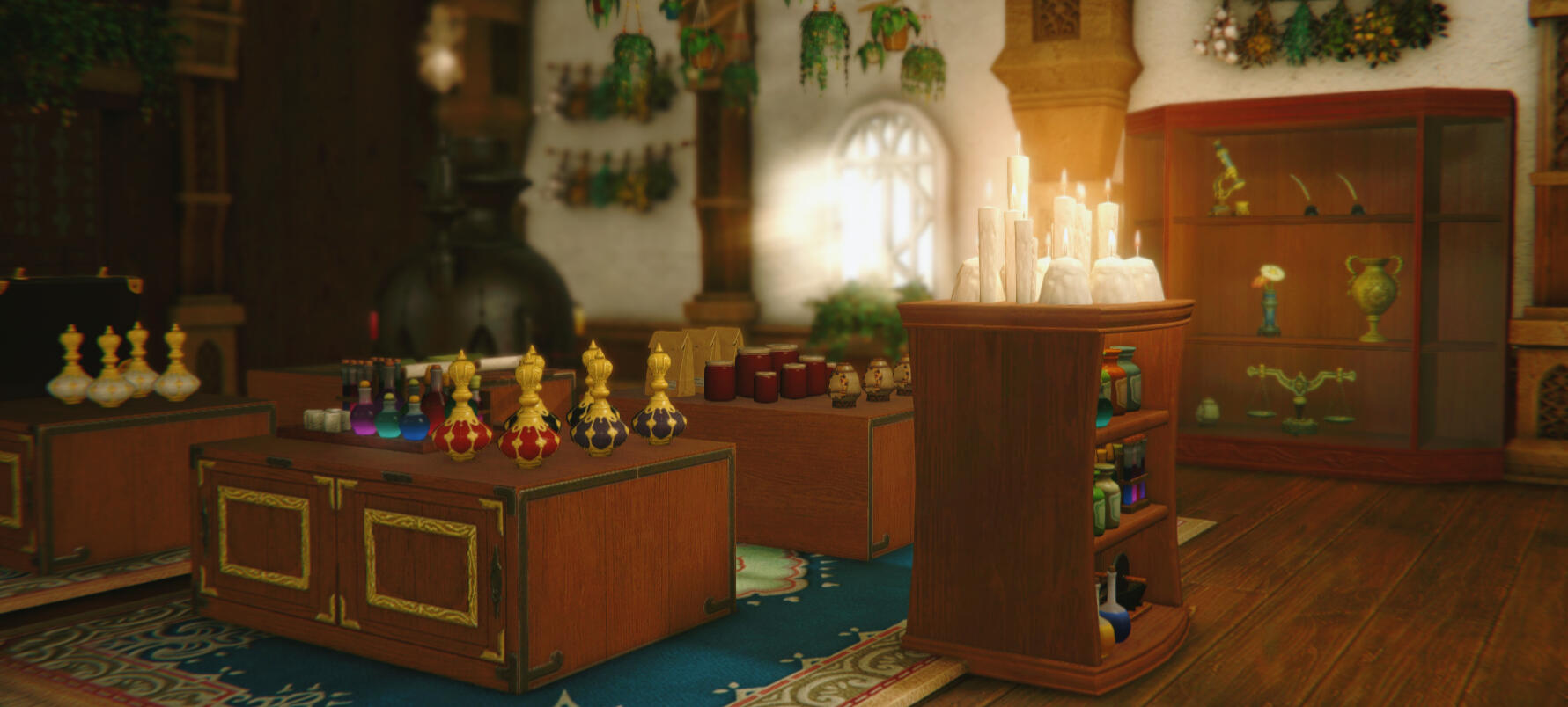 An unassuming apothecary stands at the edge of the Goblet district in Ul'dah. Just inside the doors, the gentle scents of petrichor and exotic botanicals color the air. Anything one could ever need, from common cooking spices to tinctures for complex potions, can be found here.